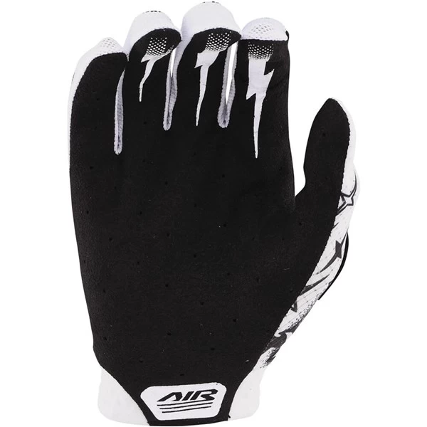 The Air Glove features a compression molded cuff and a single layer palm with laser perforated holes for breathability. Micro-mesh is used all over for added ventilation. Silicone print on finger offers a grippy spot for brake lever grip.